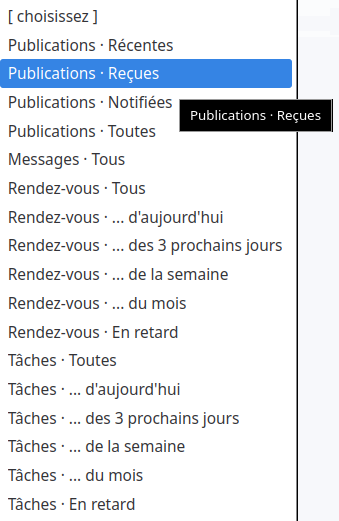 Le sélecteur reprend les recherches suivantes, liées au module journalier. Pour le moment, il n'est pas possible de choisir d'autres pages liées à d'autres modules.