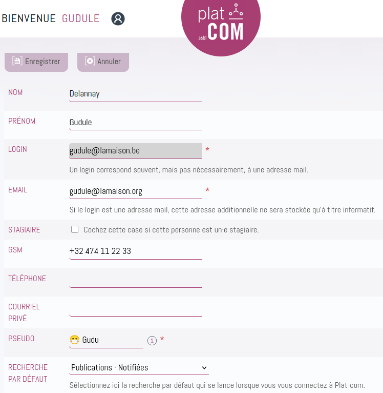 Le champ Email peut être utilisé par l'un ou l'autre module du logiciel pour vous envoyer un mail. Si votre login représente une adresse mail valide (ce qui n'est pas le cas sur l'exemple), alors oubliez ce que je viens de dire: c'est l'adresse mail définie dans le login qui sera utilisée, reléguant l'autre à un rôle purement informatif.